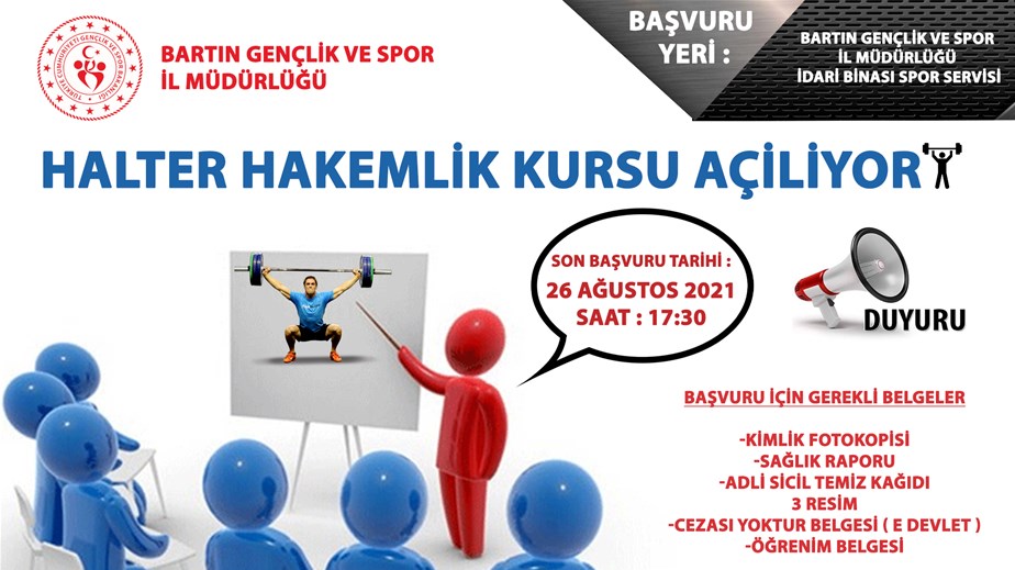 27-29 Ağustos 2021 tarihleri arasında Halter Hakemlik Kursu açılacaktır.